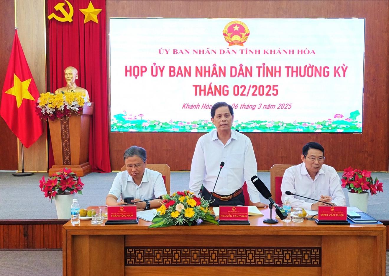 Sau khi nghe báo cáo cũng như thảo luận, ông Nguyễn Tấn Tuân, Chủ tịch UBND tỉnh Khánh Hòa đã kết luận và chỉ đạo: Các ngành, địa phương khẩn trương xây dựng chương trình hành động thực hiện Kế hoạch số 2389, ngày 3/3/2025 của UBND tỉnh về tăng trưởng kinh tế tỉnh Khánh Hòa năm 2025; hoàn chỉnh hồ sơ đề nghị Bộ Xây dựng thẩm định nhiệm vụ Quy hoạch chung đô thị Khánh Hòa đến năm 2045 và Đề án tổng thể xây dựng Khánh Hòa trở thành thành phố trực thuộc Trung ương; các ngành, địa phương quyết liệt đẩy nhanh tiến độ giải ngân vốn đầu tư công năm 2025; khẩn trương quyết toán các công trình, dự án đã hoàn thành, nghiệm thu và đưa vào sử dụng; tập trung chỉ đạo đôn đốc, quyết liệt đẩy nhanh tiến độ các dự án trọng điểm của quốc gia, của tỉnh….