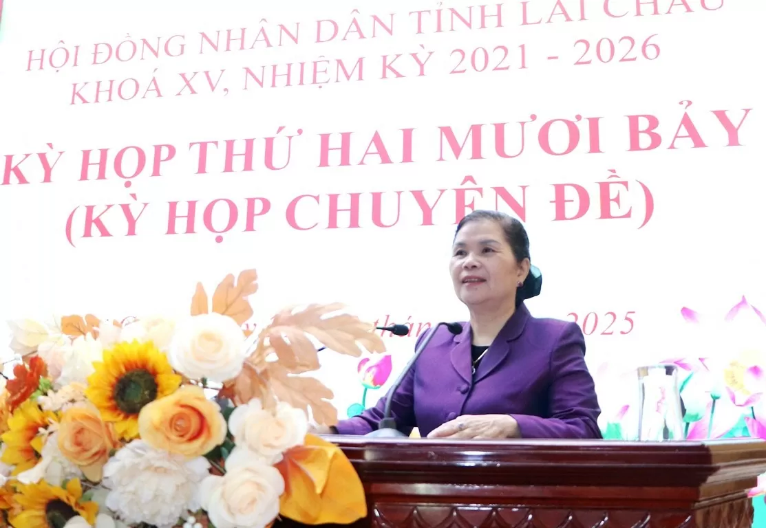 Ngay sau phát biểu khai mạc Kỳ họp, các đại biểu được nghe các tờ trình dự thảo Nghị quyết, báo cáo thẩm tra về: Bổ sung danh mục dự án và kế hoạch vốn đầu tư công trung hạn nguồn ngân sách địa phương giai đoạn 2021 - 2025 từ nguồn tăng thu, tiết kiệm chi ngân sách cấp tỉnh năm 2024 chuyển nguồn sang năm 2025; điều chỉnh kế hoạch vốn và bổ sung danh mục dự án đầu tư công trung hạn nguồn vốn ngân sách Trung ương thực hiện các Chương trình mục tiêu quốc gia giai đoạn 2021 - 2025; quy định thẩm quyền quyết định phê duyệt nhiệm vụ và dự toán kinh phí thực hiện mua sắm tài sản, trang thiết bị; phân cấp thẩm quyền quyết định phê duyệt nhiệm vụ và kinh phí thực hiện cải tạo, nâng cấp, mở rộng, xây dựng mới hạng mục công trình trong các dự án đã đầu tư xây dựng thuộc phạm vi quản lý của tỉnh Lai Châu; phân bổ chi tiết kế hoạch đầu tư nguồn ngân sách địa phương, kinh phí sự nghiệp thực hiện Chương trình mục tiêu quốc gia giảm nghèo bền vững giai đoạn 2021 - 2025, Chương trình xóa nhà tạm, nhà dột nát cho hộ nghèo, hộ cận nghèo; bổ sung kinh phí để thực hiện các chế độ, chính sách và các nhiệm vụ phát sinh năm 2025…