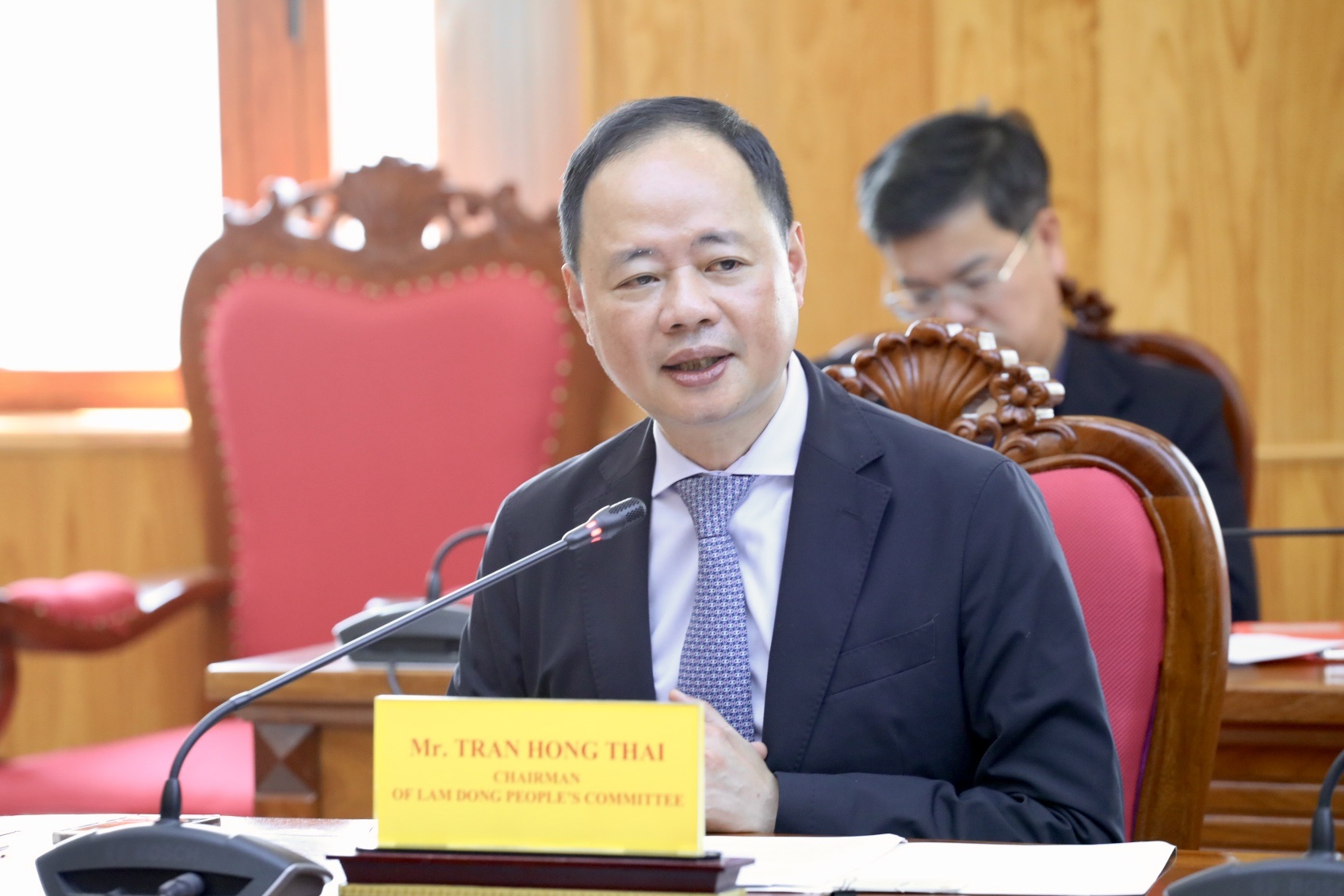 Chủ tịch UBND tỉnh Lâm Đồng Trần Hồng Thái đã chủ trì buổi làm việc với đoàn công tác của Công ty Công trình quốc tế Cục 2 Đường sắt Trung Quốc. Ảnh: Vũ Linh