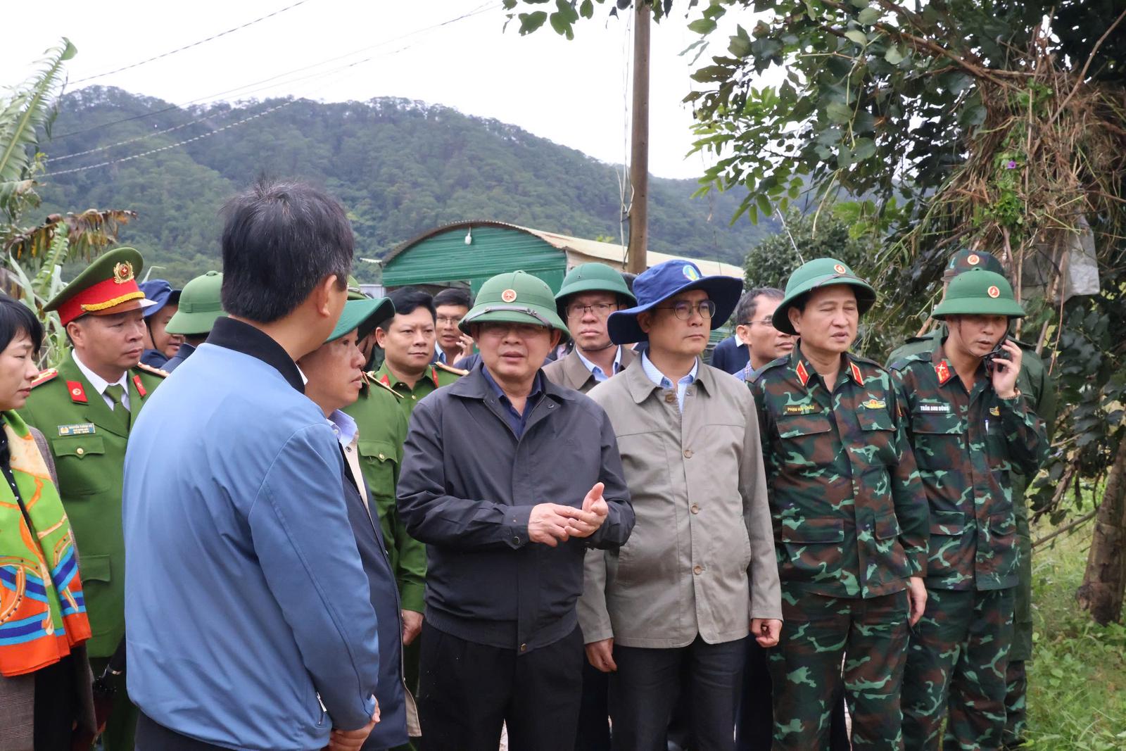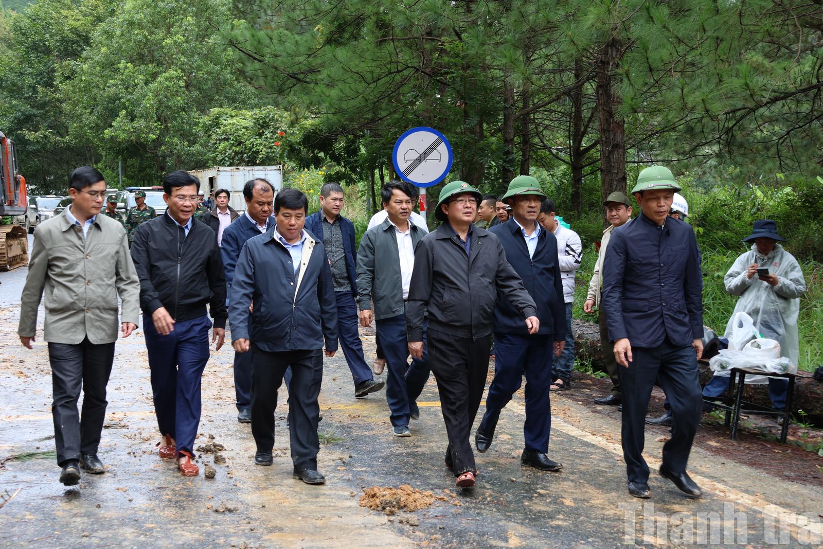 Sáng cùng ngày (21/11), Phó Thủ tướng Chính phủ Hồ Quốc Dũng dẫn đầu đoàn công tác đã trực tiếp có mặt tại điểm sạt lở trên đèo Mimosa, phường Xuân Hương - Đà Lạt, tỉnh Lâm Đồng. Ảnh: Vũ Linh