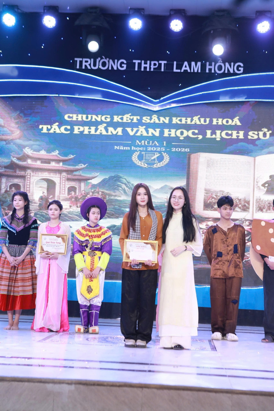 Các giải tập thể được trao gồm: Giải Triển vọng thuộc về tiết mục Tấm Cám; Giải Ba thuộc về hai tiết mục Dế Mèn phiêu lưu ký và Khởi nghĩa Lam Sơn; Giải Nhì thuộc về hai tiết mục Chí Phèo và Tắt đèn. Chủ nhân của Giải Nhất là tiết mục Vợ chồng A Phủ (lớp 11A8, 11A10); Giải Đặc biệt gọi tên tiết mục Tiếng trống Mê Linh của lớp 10D1.