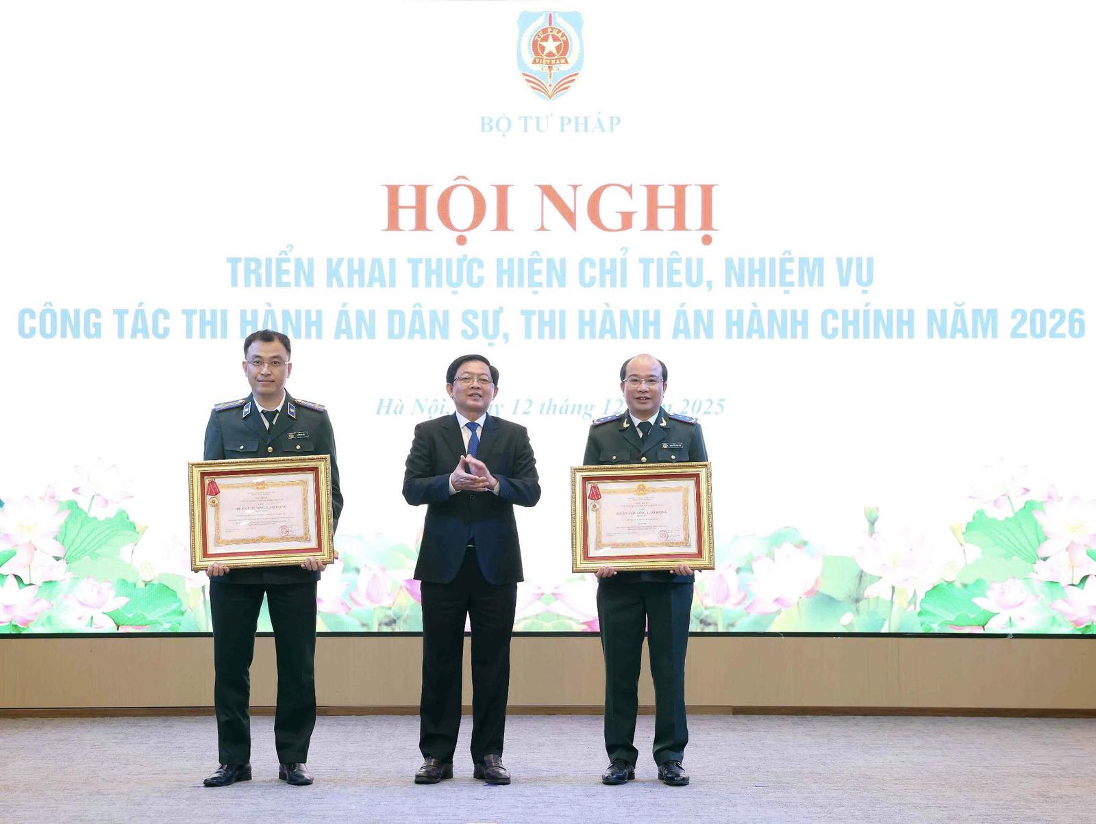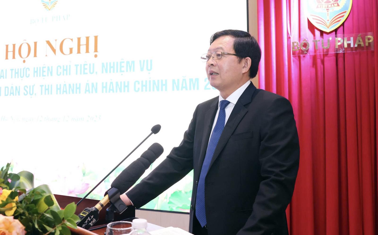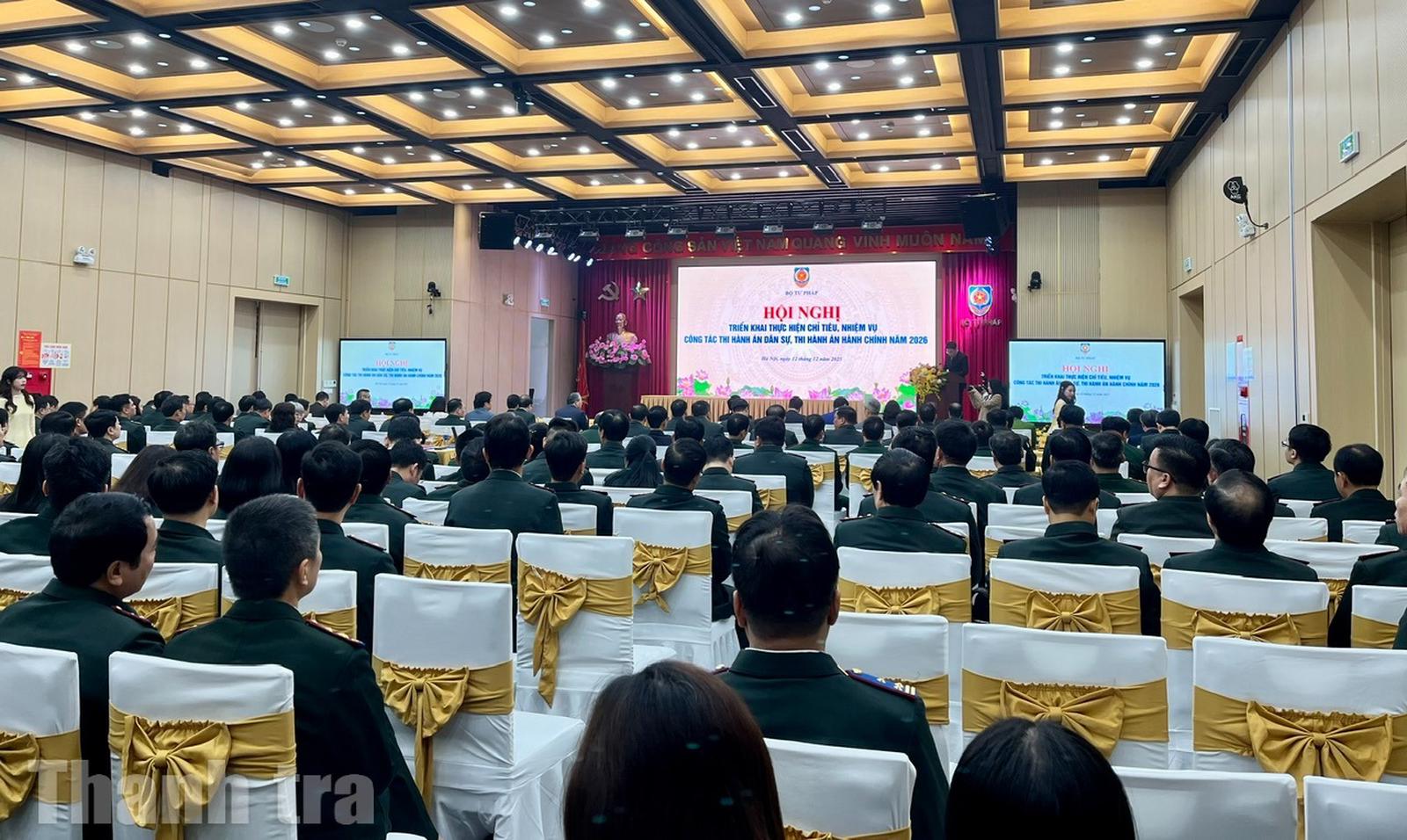Sáng 12/12, tại Hà Nội, Bộ Tư pháp tổ chức Hội nghị triển khai thực hiện chỉ tiêu, nhiệm vụ công tác THADS, theo dõi thi hành án hành chính năm 2026, nhằm đánh giá toàn diện kết quả công tác năm 2025 và xác định mục tiêu, giải pháp trọng tâm của năm tiếp theo.