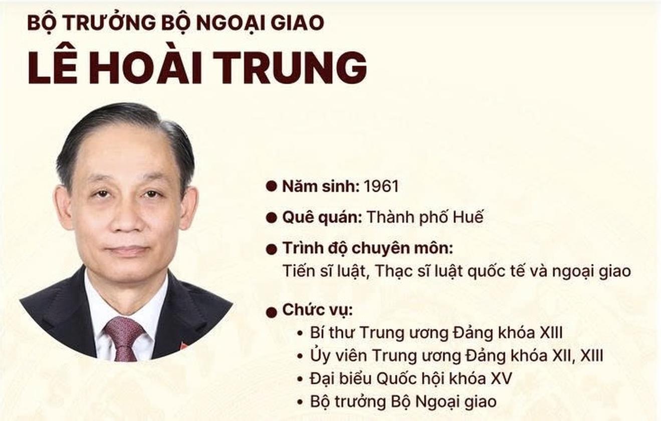 Theo hồ sơ được công bố, ông Lê Hoài Trung là Ủy viên Trung ương Đảng các khóa XII, XIII; có trình độ Tiến sĩ Luật, Thạc sĩ Luật và Ngoại giao; từng đảm nhiệm nhiều cương vị quan trọng trong lĩnh vực đối ngoại như Thứ trưởng Bộ Ngoại giao, Đại sứ, Đại diện Thường trực Việt Nam tại Liên hợp quốc, Trưởng Ban Đối ngoại Trung ương Đảng, Chánh Văn phòng Trung ương Đảng và hiện là Bí thư Trung ương Đảng, Bí thư Đảng ủy, Bộ trưởng Bộ Ngoại giao.