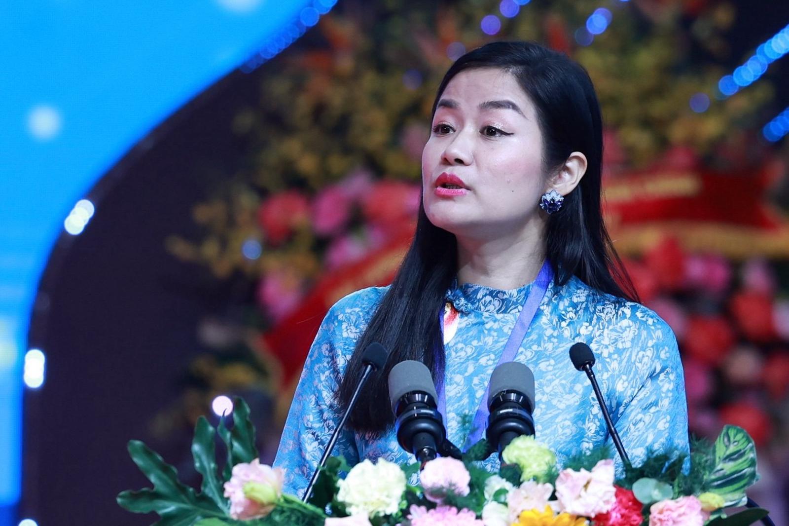 Chị Phùng Nguyệt Hà – cán bộ Tập đoàn FECON, đại diện cho hơn 600.000 đoàn viên, người lao động Thủ đô tham dự Đại hội. Ảnh: NĐ