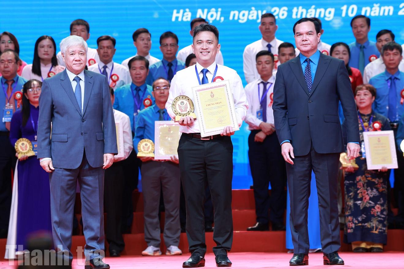 Ông Ngọ Duy Hiểu - Phó Chủ tịch Thường trực Tổng Liên đoàn Lao Động Việt Nam trao biểu trưng và Giấy chứng nhận cho các cá
