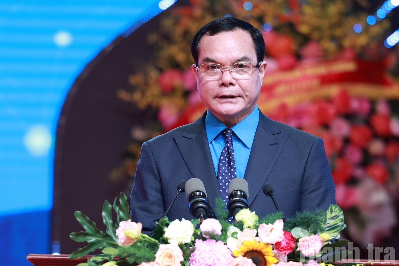 Thay mặt Đoàn Chủ tịch Tổng Liên đoàn Lao động Việt Nam, ông Nguyễn Đình Khang phát động phong trào thi đua trong công nhân, viên chức, lao động cả nước giai đoạn 2025 - 2030 với chủ đề “Thi đua đổi mới sáng tạo, chuyển đổi số, nâng cao năng suất lao động, vững tin cùng đất nước bước vào kỷ nguyên mới”.