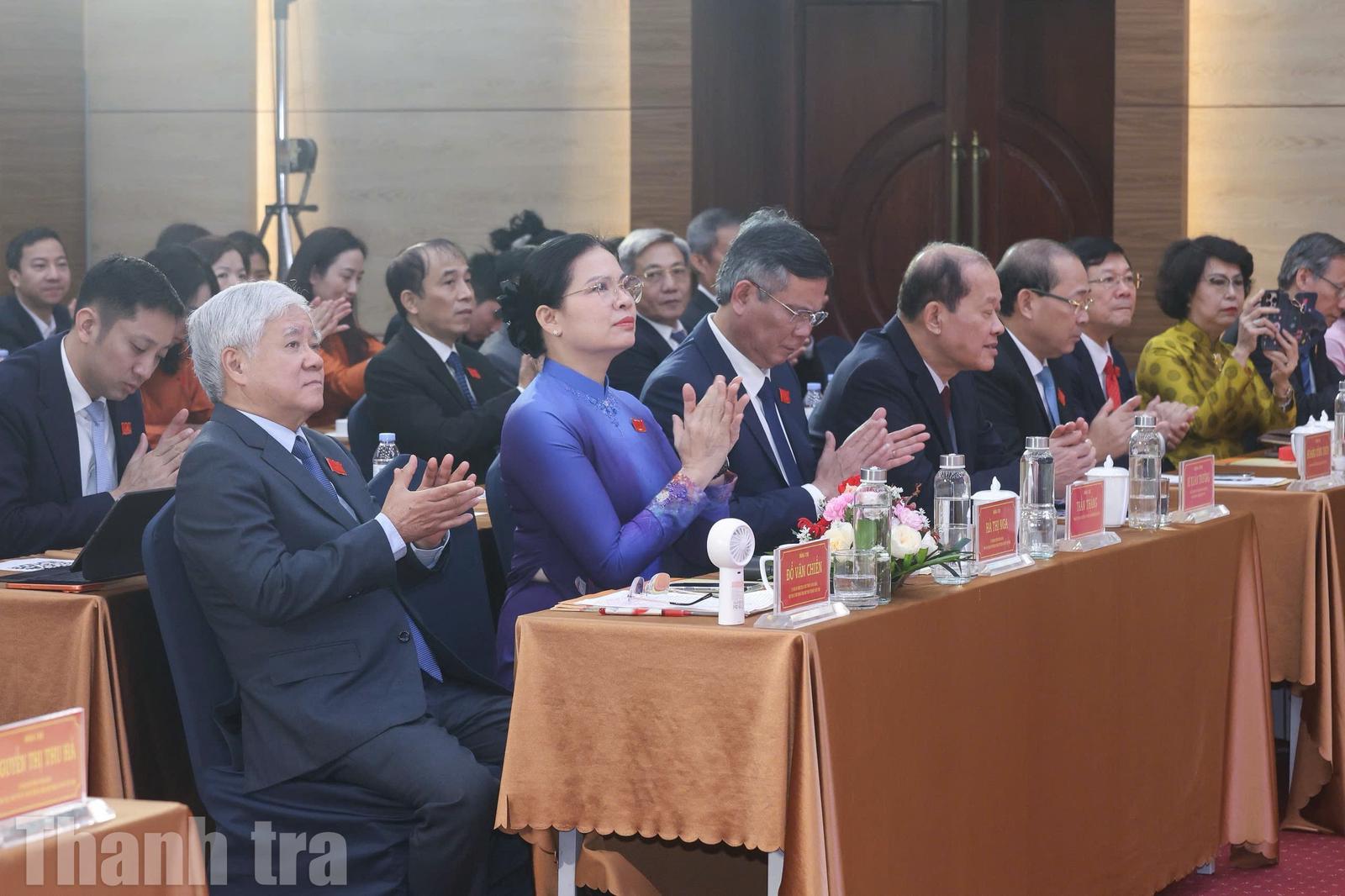 Ông Đỗ Văn Chiến, Ủy viên Bộ Chính trị, Bí thư Trung ương Đảng, Bí thư Đảng ủy MTTQ, các đoàn thể Trung ương, Chủ tịch UBTƯ MTTQ Việt Nam, Phó Chủ tịch Hội đồng Thi đua - Khen thưởng Trung ương cùng các đại biểu tham dự Đại hội. Ảnh: Trí Vũ