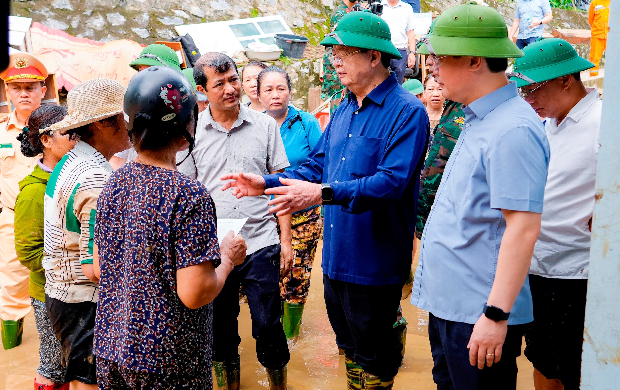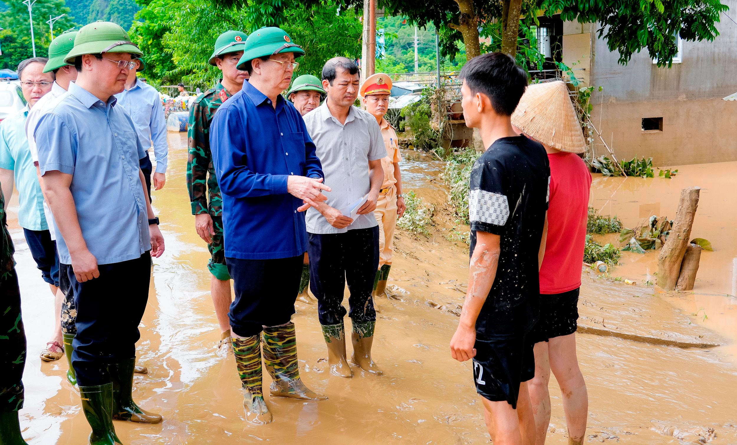 Phó Thủ tướng nhấn mạnh, dù nước đã rút một phần nhưng người dân tuyệt đối không được chủ quan. Trên hết phải đảm bảo an toàn tính mạng; tranh thủ nước rút đến đâu dọn dẹp vệ sinh môi trường đến đó để phòng, chống dịch bệnh bùng phát sau lũ.
