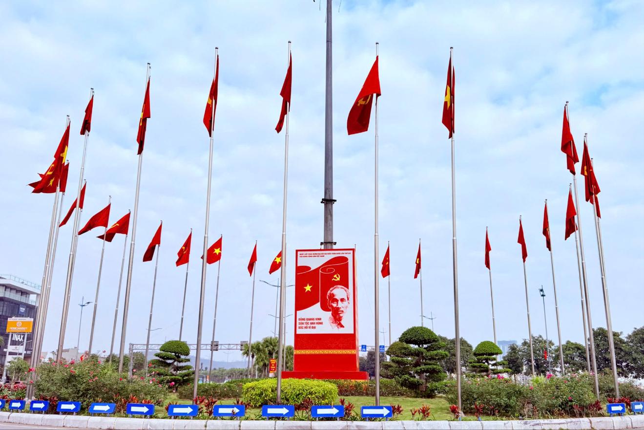 Không khí hướng về Đại hội XIV lan tỏa tại các tuyến phố trung tâm tỉnh Quảng Ninh. Ảnh: Thanh Tùng