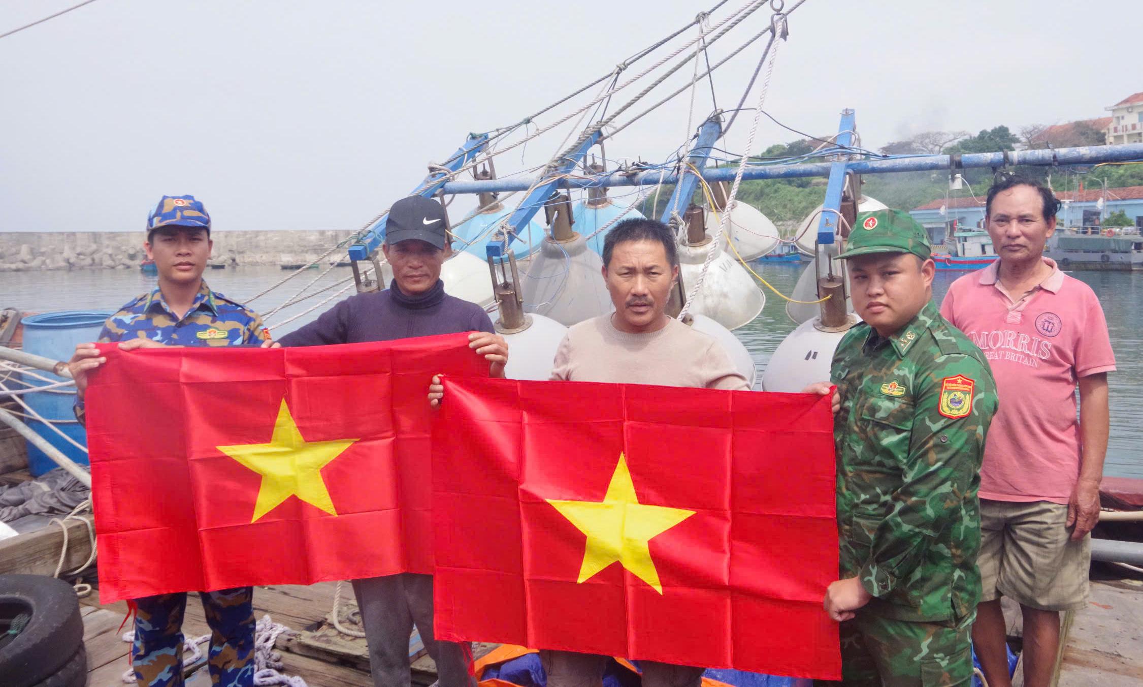 Dịp này, lực lượng BĐBP Quảng Trị cũng đã trao tặng cờ Tổ quốc và tuyên truyền cho ngư dân trên tàu cá QT 9331 TS các quy định của pháp luật về hoạt động khai thác thủy sản, các quy định về chống khai thác IUU khi đánh bắt trên biển.