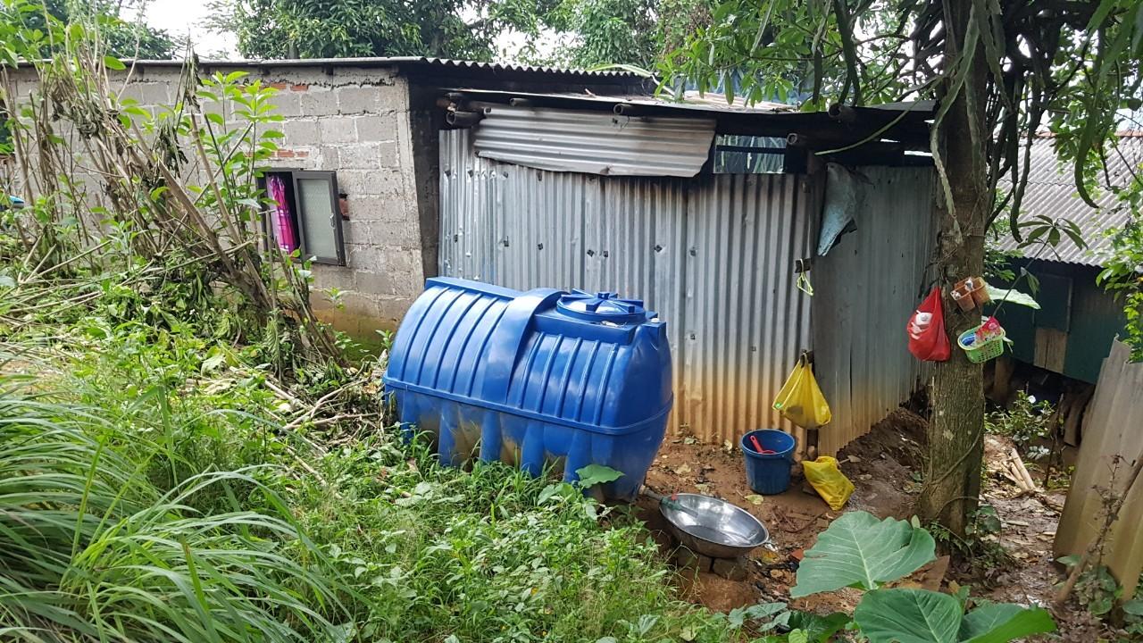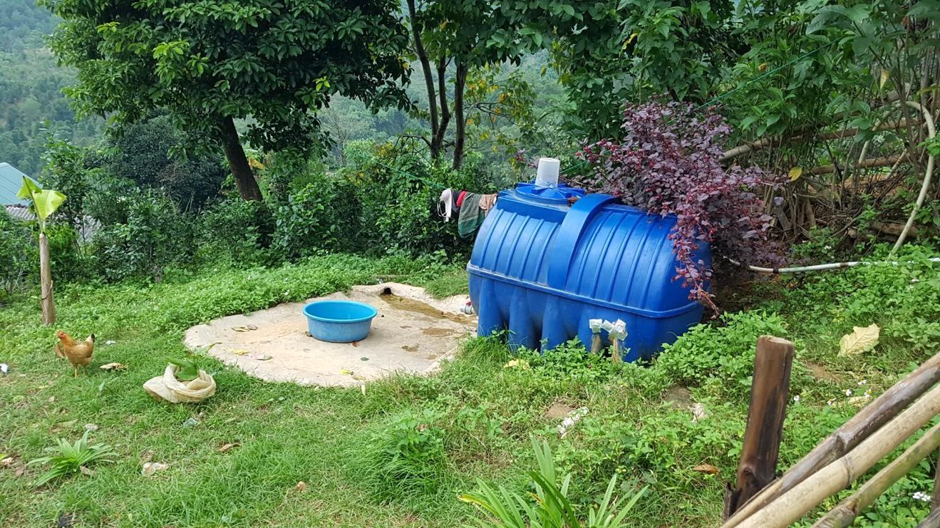 Một bồn chứa nước của người dân huyện Hướng Hóa được lấy từ nguồn nước tự chảy, không qua bất kỳ công đoạn xử lý nào. Ảnh: Minh Tân