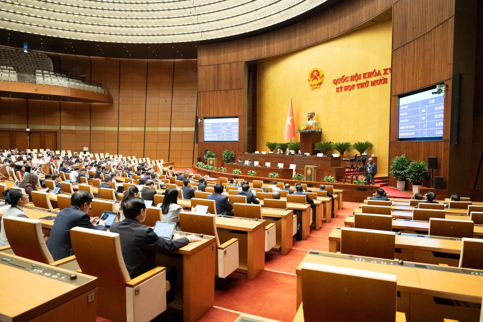 Trong hai ngày cuối kỳ họp, Quốc hội dành toàn bộ thời gian để biểu quyết thông qua các dự thảo luật và nghị quyết.
