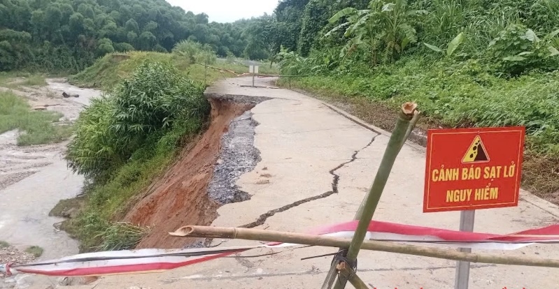 Sáng 27/7, thông tin từ UBND xã Na Mèo, tỉnh Thanh Hoá, từ tối qua (26/7) tuyến đường vào bản Sa Ná, bản Son, bản Ché Lầu sạt lở taluy âm nghiêm trọng với chiều dài hơn 100m.