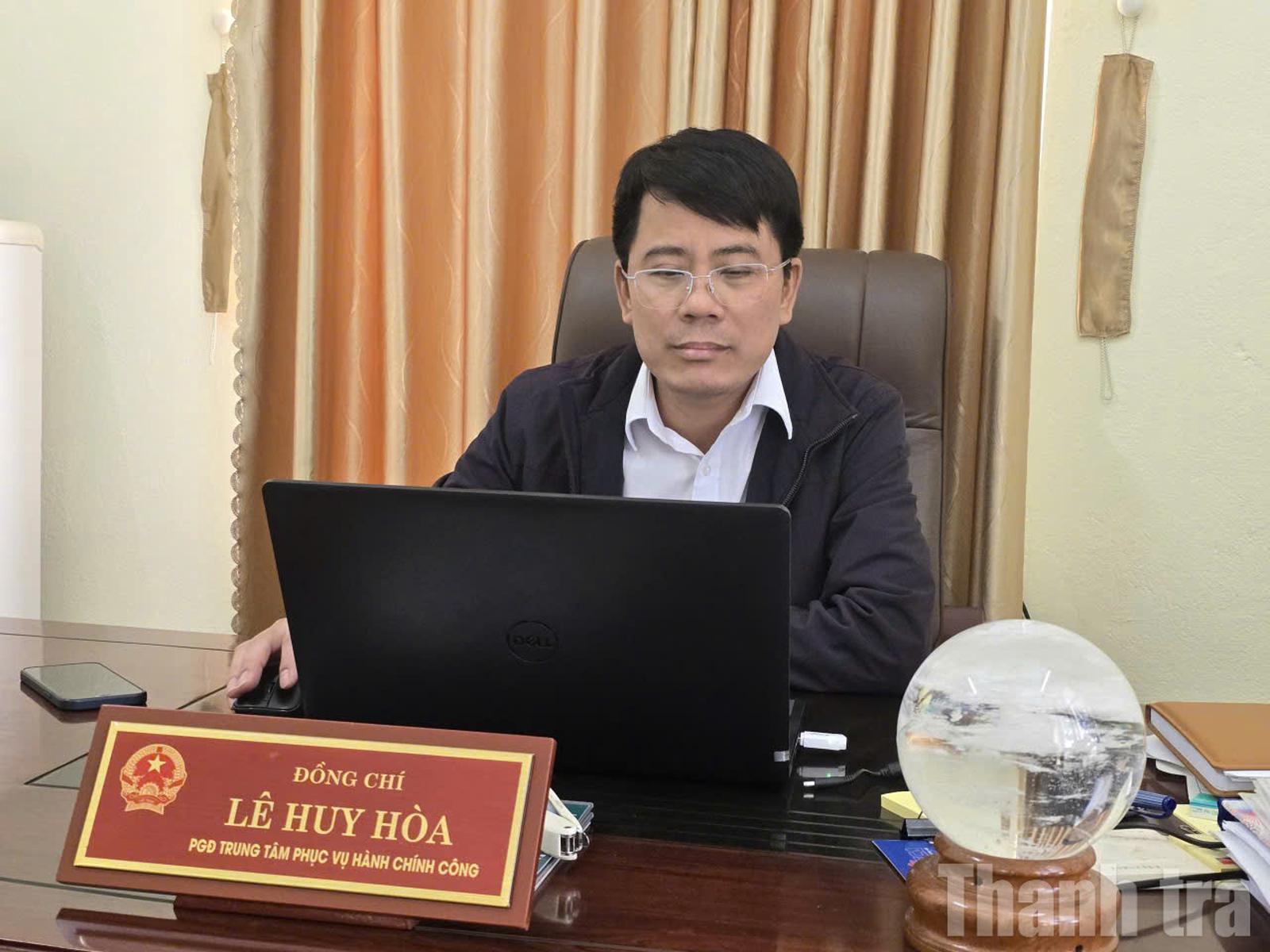 Ông Lê Huy Hòa, Phó Giám đốc Trung tâm Phục vụ hành chính công phường Đông Tiến trao đổi với phóng viên Báo Thanh tra. Ảnh: Văn Thanh