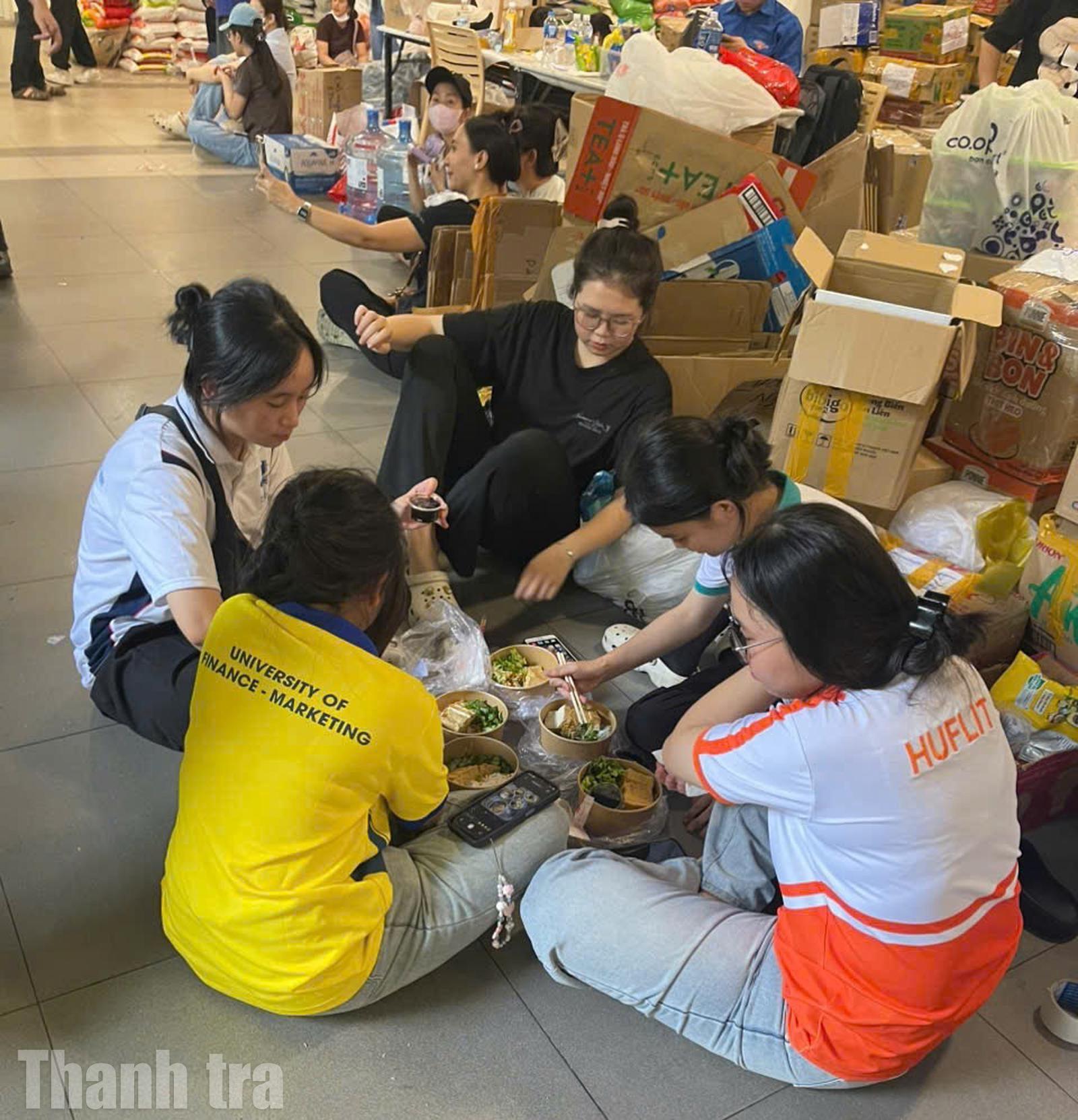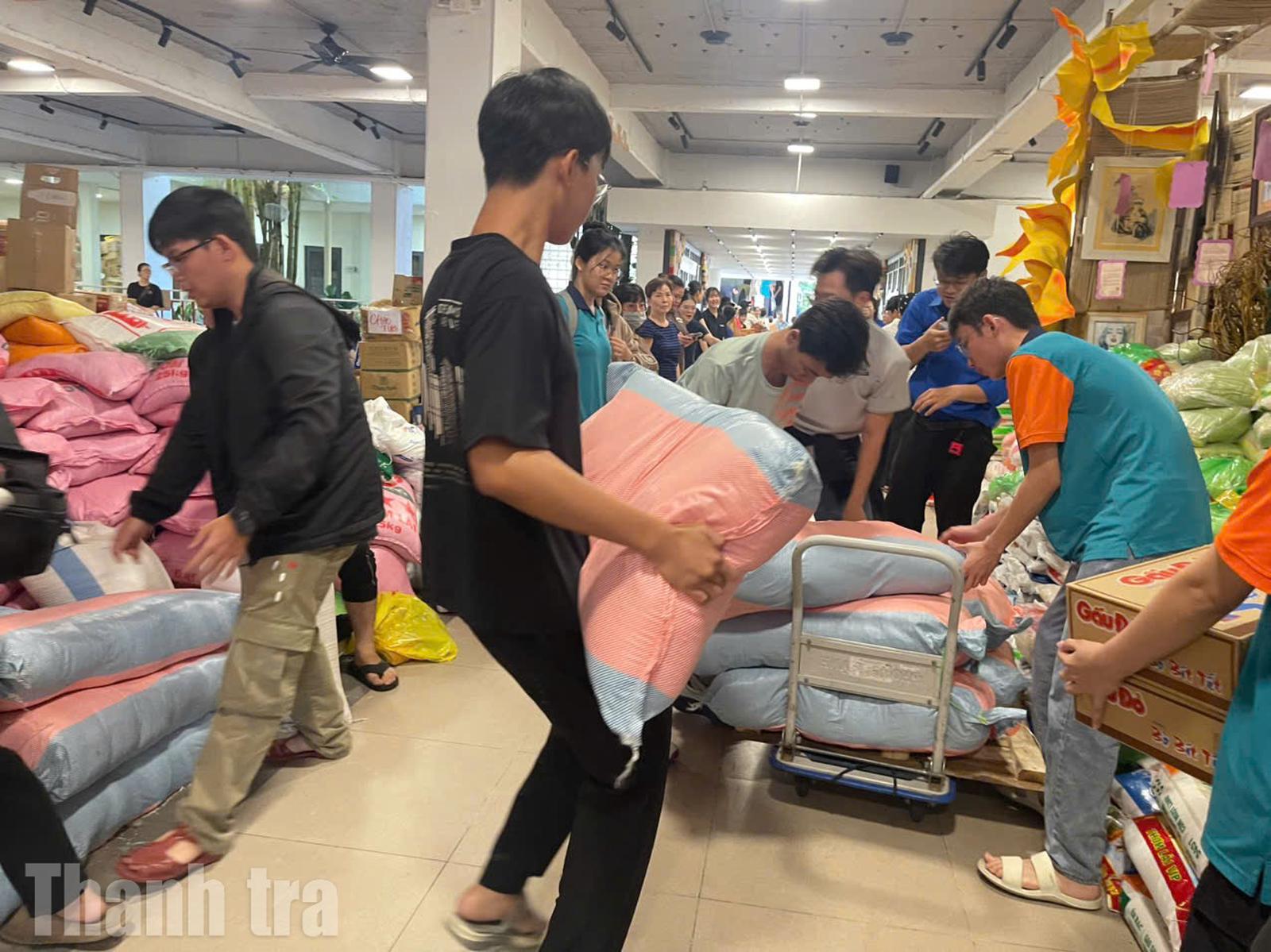 Theo ghi nhận của chúng tôi, đêm muộn hay trong giờ hành chính, các bà, các mẹ, các chị, các bác, các anh, các bạn sinh viên và cả các cháu nhỏ không ngừng tay đóng gói, vận chuyển, khuân hàng, sắp xếp lên các chuyến xe để kịp chuyển đến tay bà con vũng lũ và chịu ảnh hưởng của lũ.