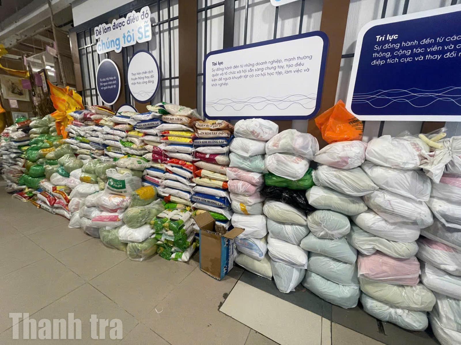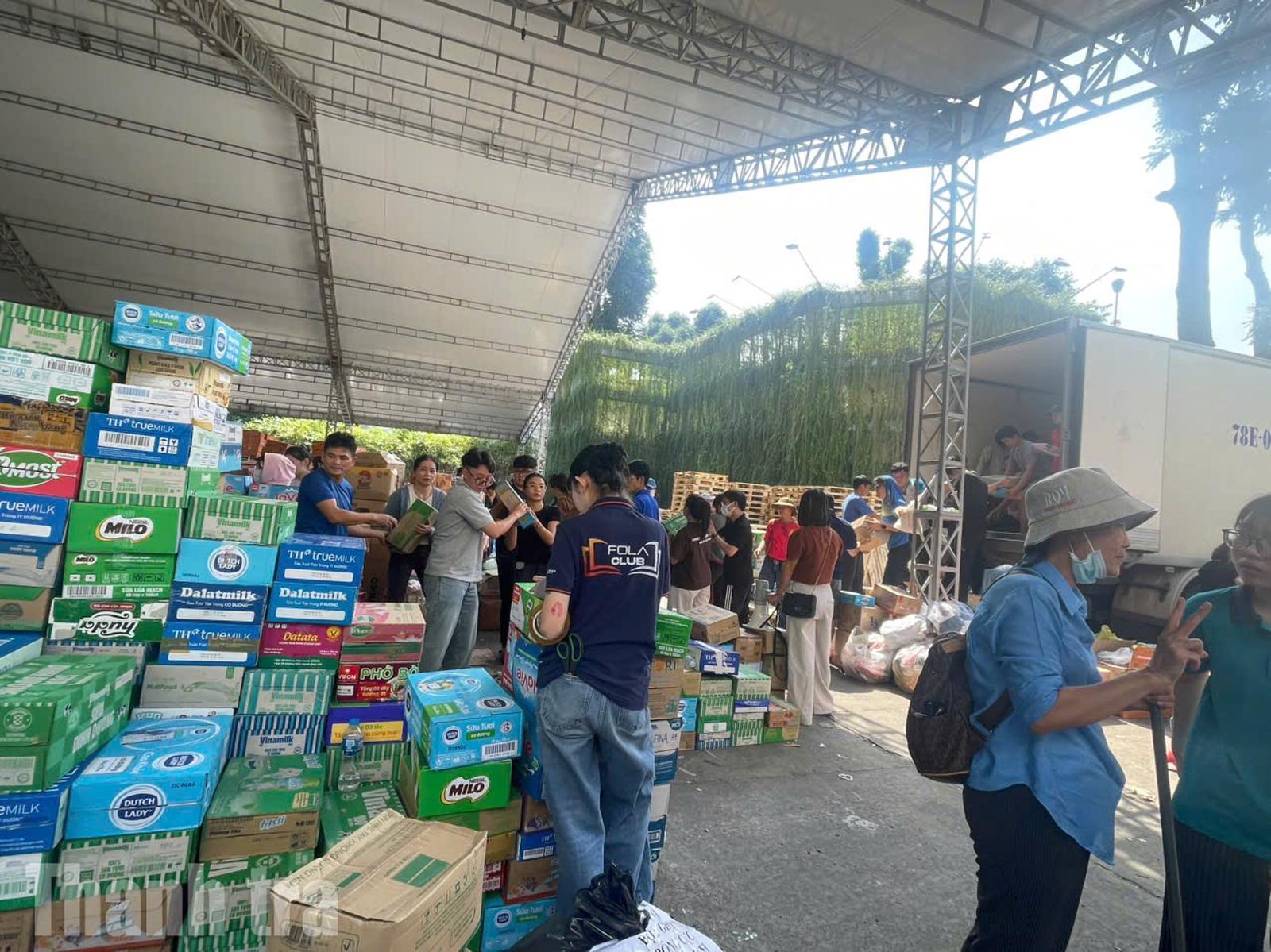 Hàng trăm nghìn kiện hàng được sắp xếp ngăn nắp để chuyển đi hỗ trợ bà con. Ảnh: TH
