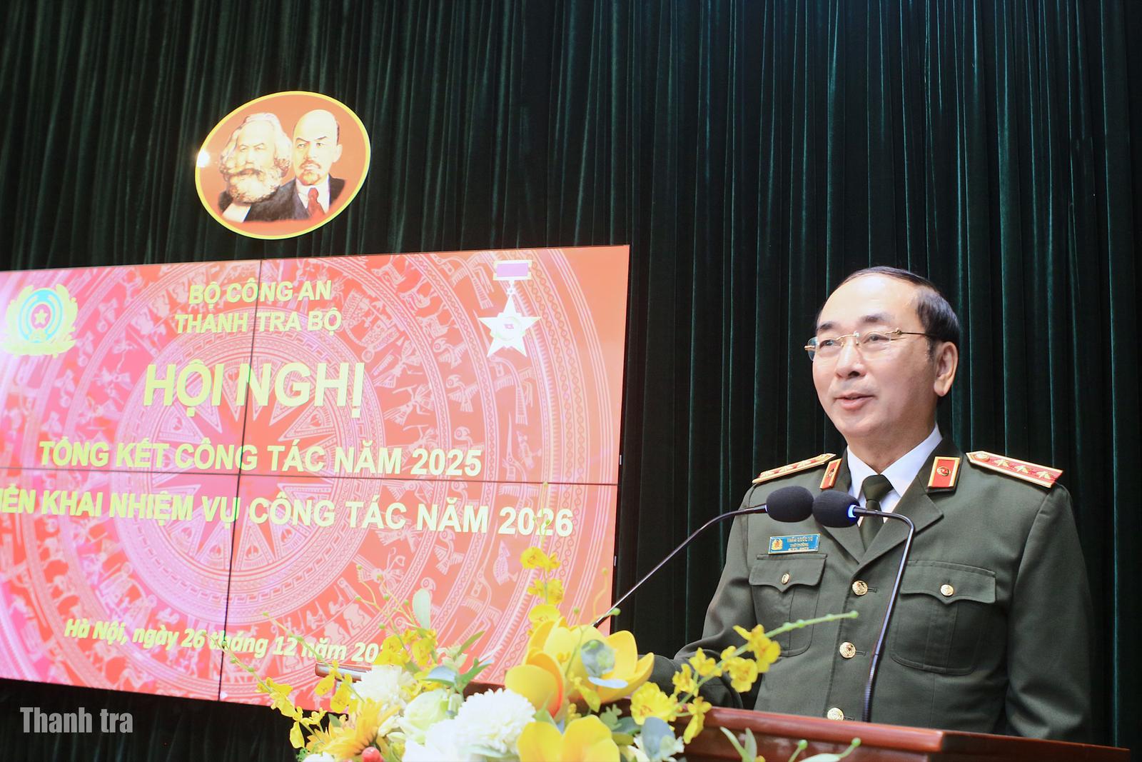 Phát biểu chỉ đạo tại hội nghị, Thượng tướng Trần Quốc Tỏ, Thứ trưởng Bộ Công an đã biểu dương, đánh giá cao những thành tích, nhiệm vụ, mà Đảng bộ, cán bộ chiến sĩ Thanh tra Bộ Công an đã đạt được trong năm 2025; ghi nhận công tác chuẩn bị hội nghị chu đáo, chi tiết và đầy đủ, trong đó, Báo cáo tổng kết đã thẳng thắn chỉ ra những mặt còn hạn chế và đề ra những giải pháp cụ thể để khắc phục.