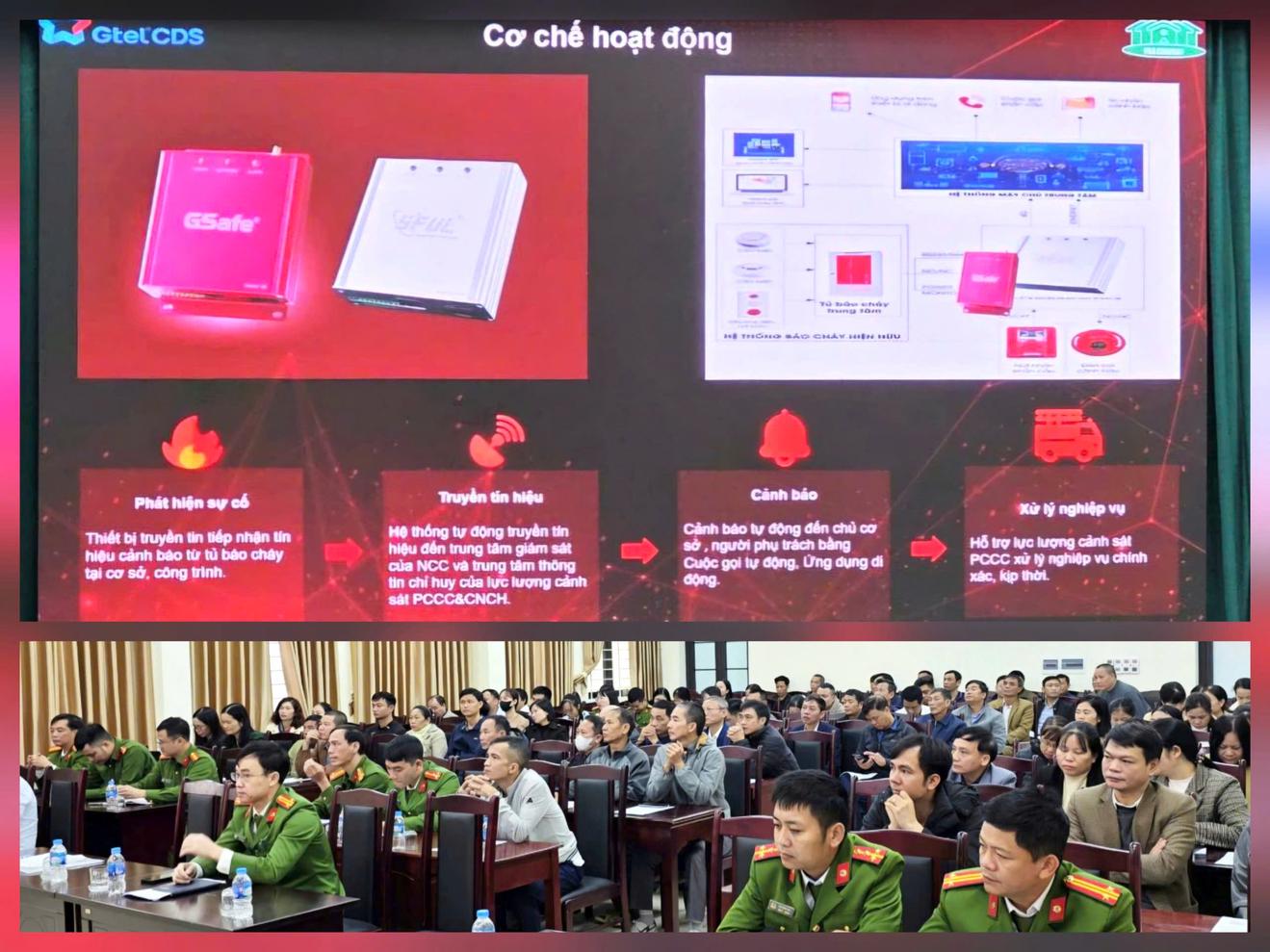 Công an tỉnh Ninh Bình phối hợp với Tổng công ty Công nghệ - Viễn thông Toàn cầu (Gtel) và UBND một số xã để tuyên truyền, hướng dẫn khai báo, cập nhật thông tin cơ sở và lắp đặt, kết nối thiết bị truyền tin báo cháy cho người đứng đầu các cơ quan, doanh nghiệp, hộ kinh doanh. Ảnh: CA Ninh Bình
