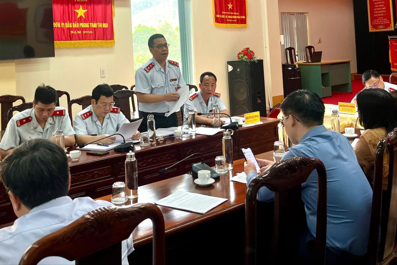 Thanh tra tỉnh Yên Bái công bố quyết định thanh tra chuyên đề về công tác quản lý thăm dò, khảo sát, quy hoạch, cấp phép, khai thác, vận chuyển đối với mỏ vật liệu xây dựng trên địa bàn tỉnh. Ảnh: Đào Hoan