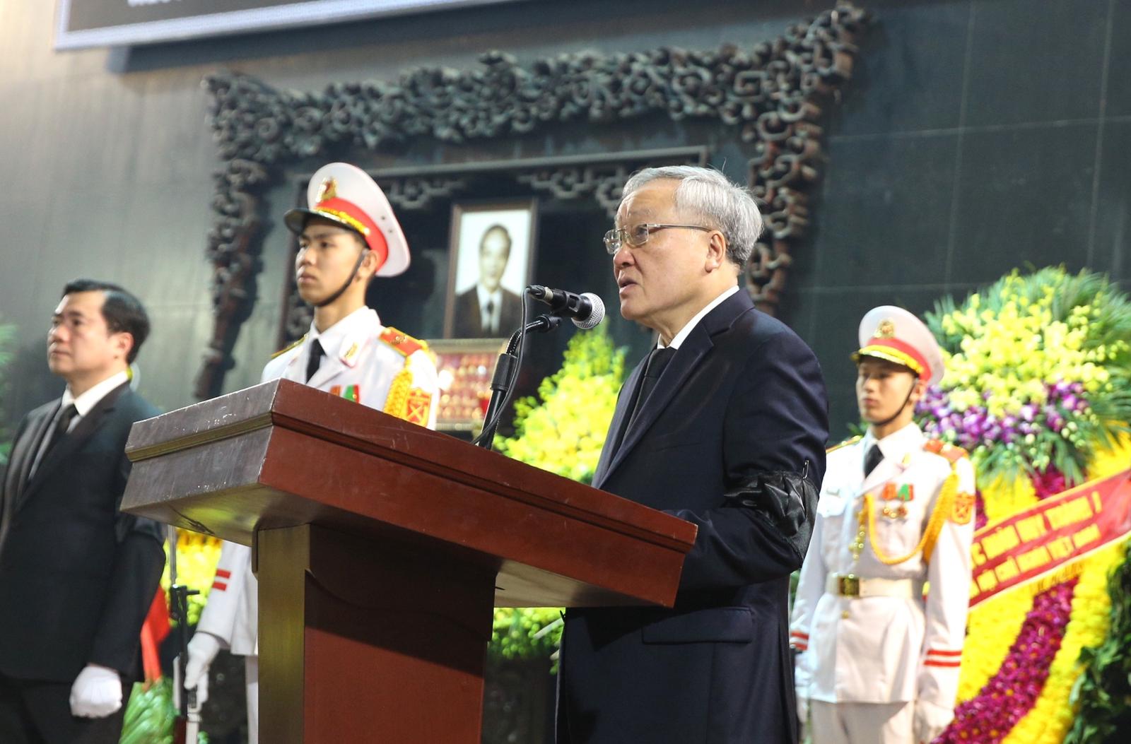 Phó Thủ tướng Thường trực Chính phủ Nguyễn Hòa Bình đọc lời điếu tại Lễ truy điệu. Ảnh: N.Hoàng