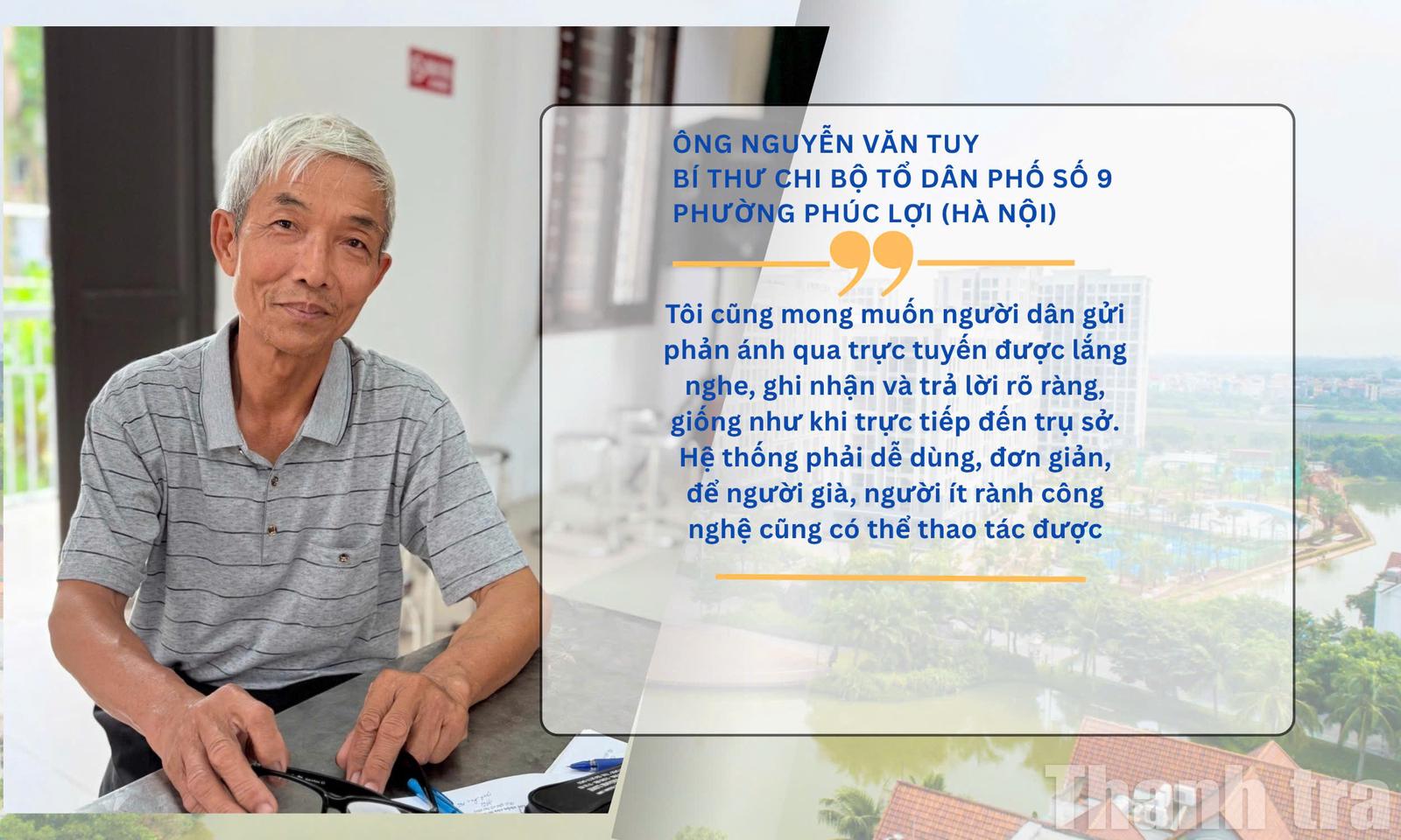 Nhưng tôi cũng mong muốn hình thức này được triển khai thực sự hiệu quả. Người dân gửi phản ánh qua trực tuyến cần phải được lắng nghe, ghi nhận và trả lời rõ ràng, giống như khi trực tiếp đến trụ sở. Hệ thống phải dễ dùng, đơn giản, để người già, người ít rành công nghệ cũng có thể thao tác được. Ngoài ra, việc bảo mật thông tin cá nhân rất quan trọng, vì nhiều nội dung phản ánh là riêng tư, nhạy cảm. Nếu không bảo đảm, người dân sẽ ngần ngại, không dám gửi ý kiến.