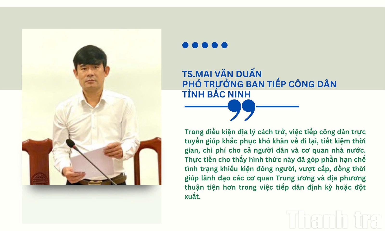 Việc bổ sung hình thức tiếp công dân trực tuyến trong dự thảo Luật sửa đổi, bổ sung một số điều của Luật Tiếp công dân, Luật Khiếu nại, Luật Tố cáo đang được giới chuyên gia và dư luận quan tâm. Nhiều ý kiến cho rằng, đây là đột phá trong cải cách hành chính, tuy nhiên cần xây dựng quy trình chuẩn thống nhất, từ tiếp nhận đến xử lý, trả lời, để tránh hình thức, đảm bảo công bằng và hiệu lực pháp lý.