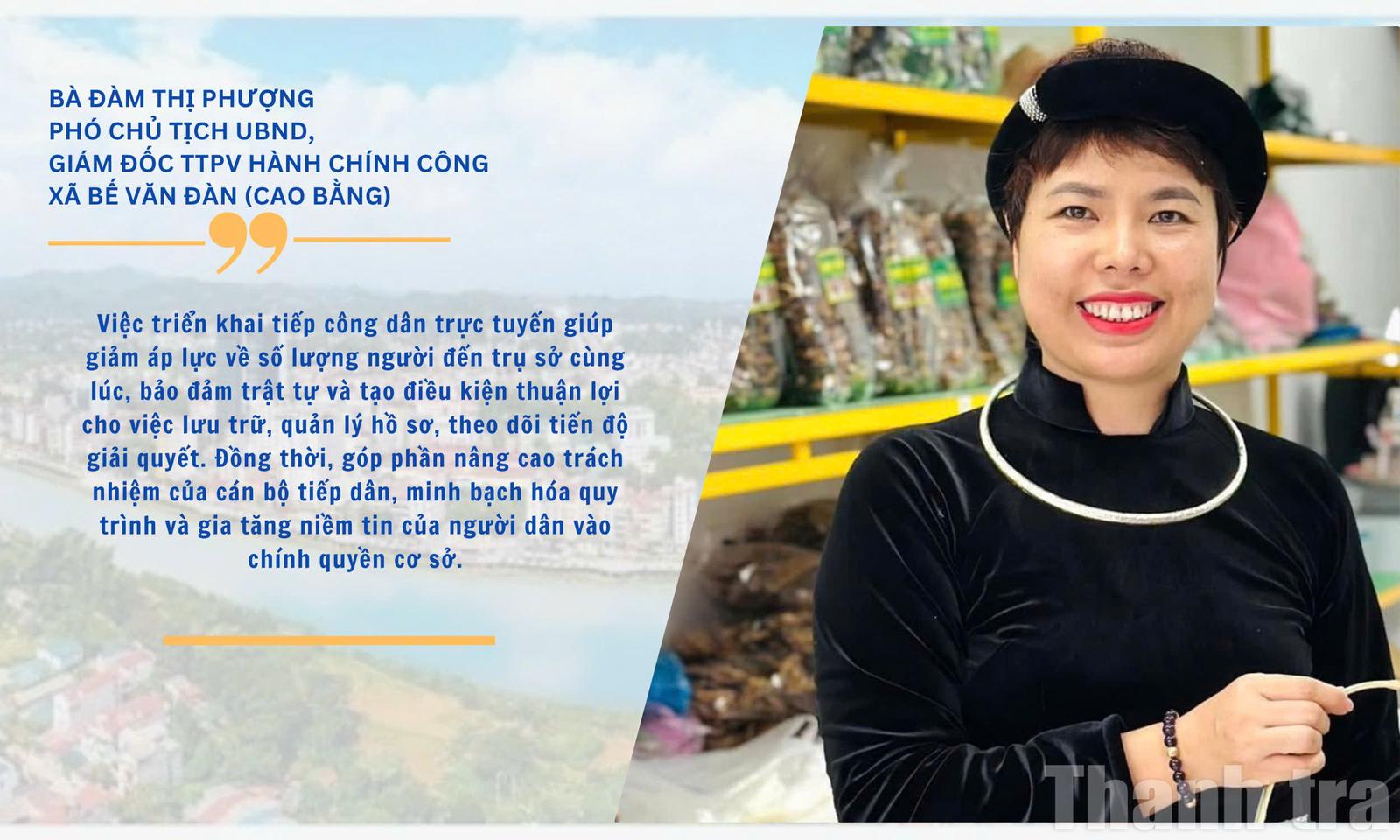 Bà Đàm Thị Phượng, Phó Chủ tịch UBND, Giám đốc Trung tâm Phục vụ Hành chính công xã Bế Văn Đàn (Cao Bằng): "Hình thức tiếp công dân trực tuyến sẽ trở thành kênh tương tác hiện đại, tiện lợi và minh bạch, giúp người dân tiếp cận cơ quan Nhà nước dễ dàng hơn"