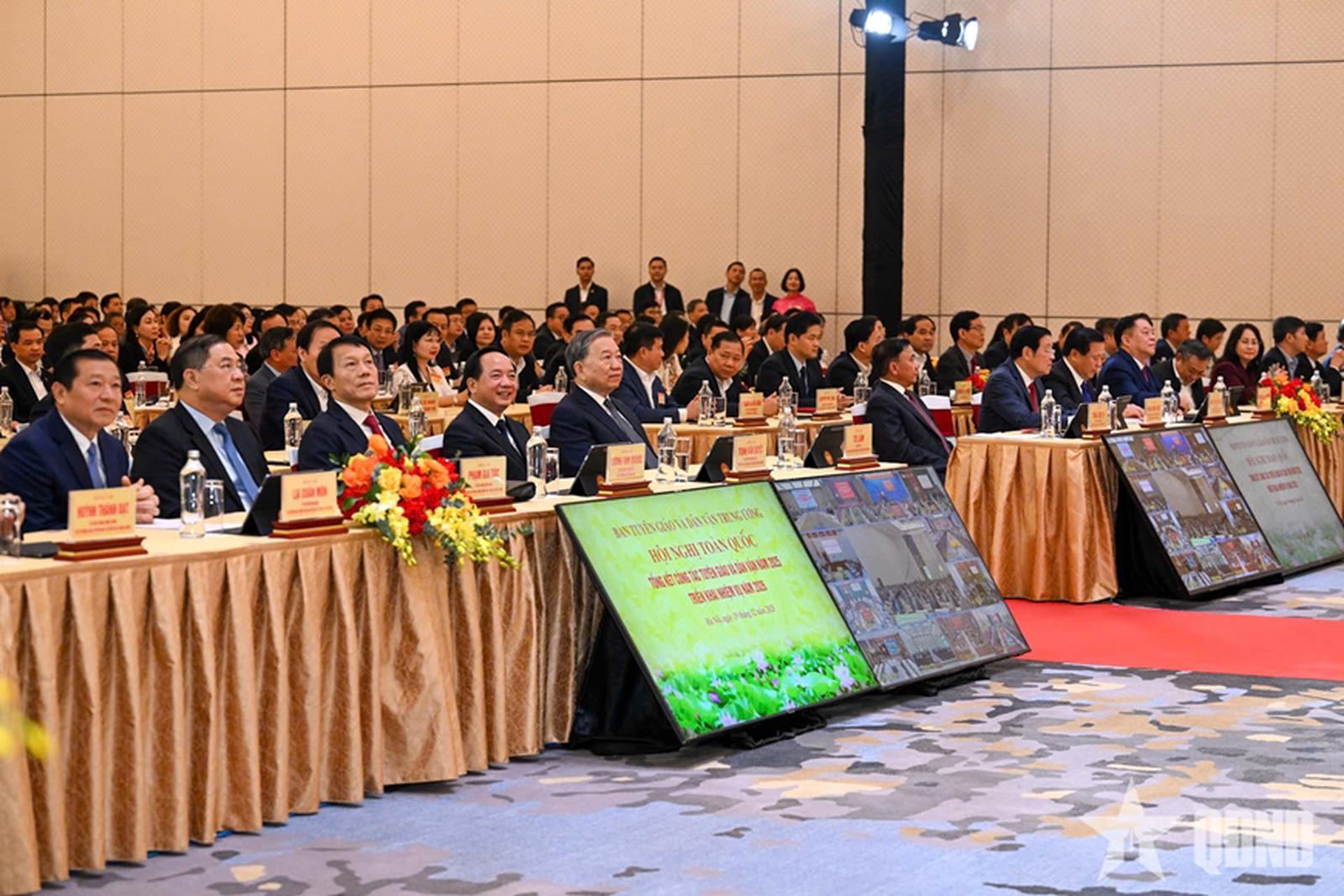 Tổng Bí thư Tô Lâm và các đại biểu tham dự Hội nghị toàn quốc tổng kết công tác tuyên giáo và dân vận năm 2025, triển khai nhiệm vụ năm 2026. Ảnh; QĐND