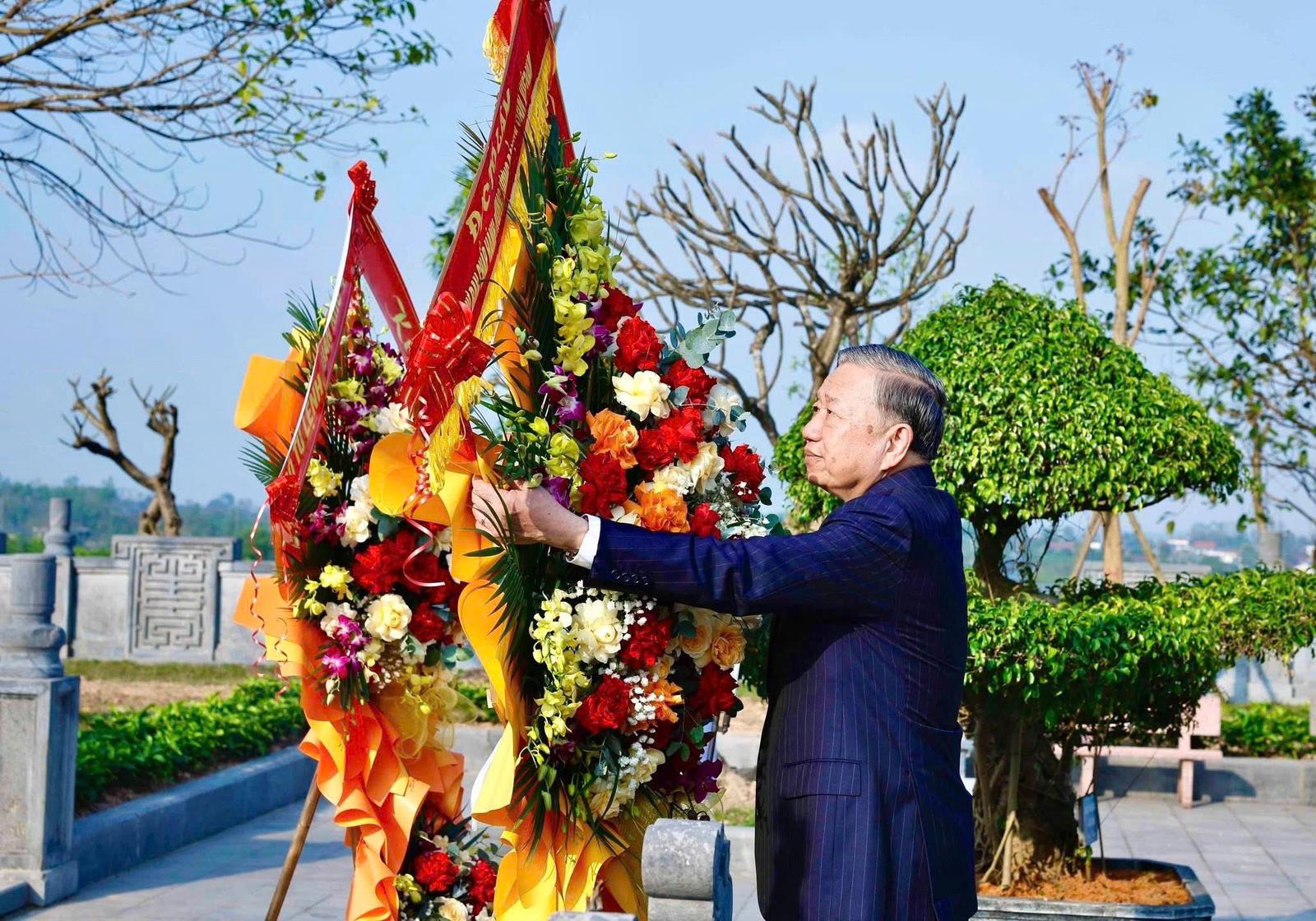 Tổng Bí thư Tô Lâm dâng hương tưởng niệm các nhà lãnh đạo tiền bối và anh hùng liệt sĩ tại Hà Tĩnh