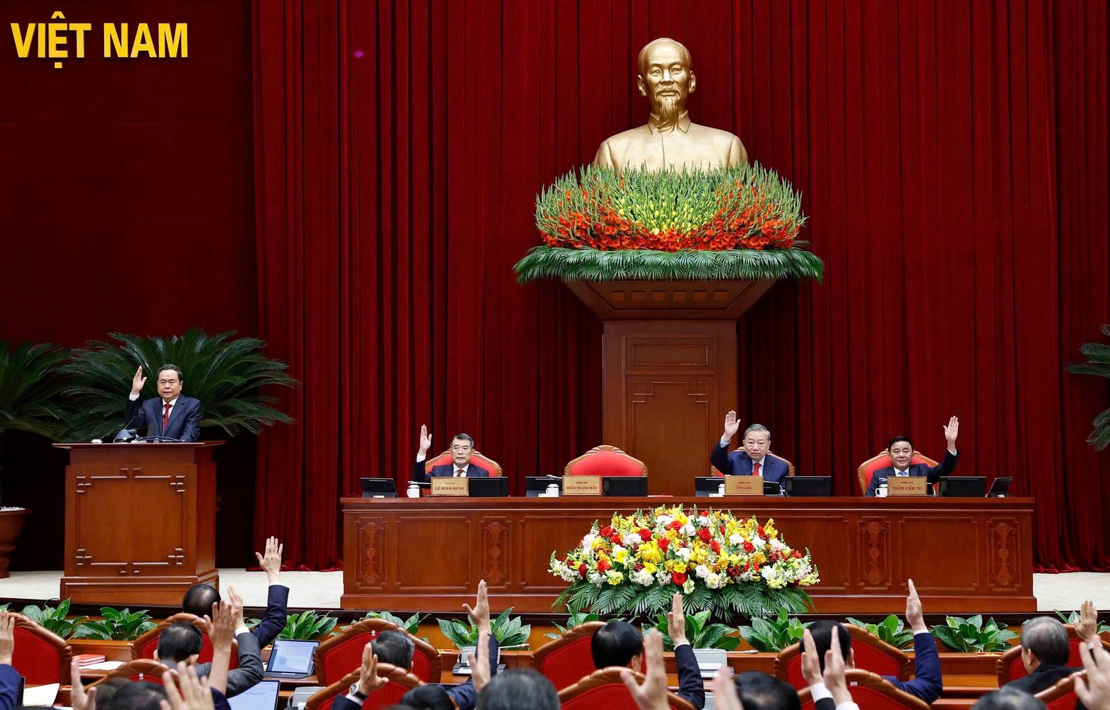 Các đại biểu thông qua nội dung chương trình Hội nghị Trung ương 2 khóa XIV. Ảnh: P.Thắng