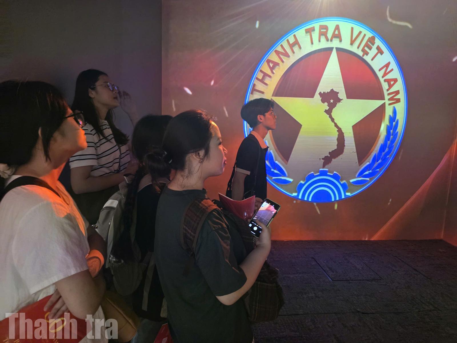 Nhiều bạn trẻ thích thú với Phòng trải nghiệm đa giác quan của Thanh tra Chính phủ. Ảnh: Bảo San