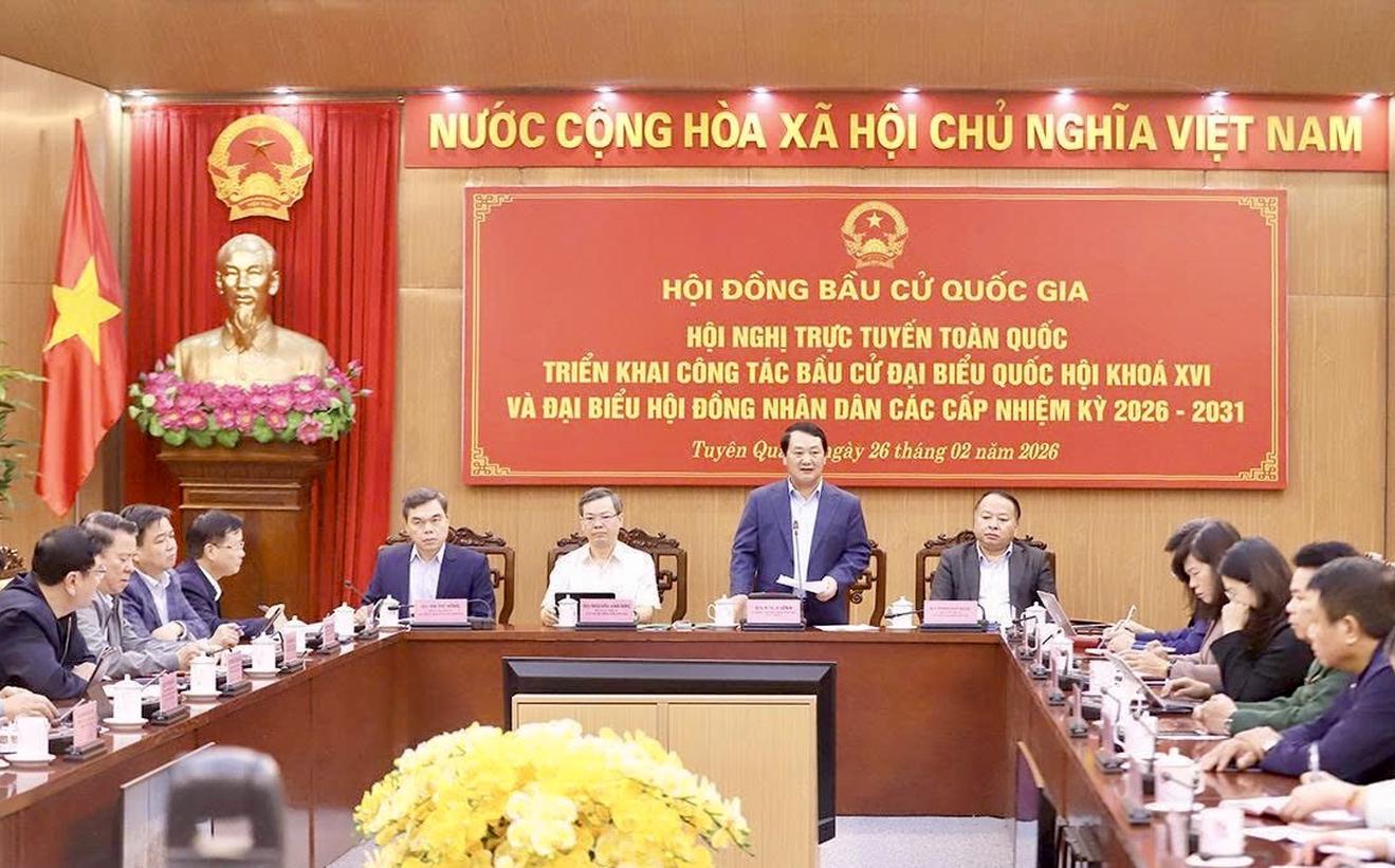 Ngay sau Hội nghị trực tuyến toàn quốc triển khai công tác bầu cử đại biểu Quốc hội khóa XVI và đại biểu HĐND các cấp nhiệm kỳ 2026-2031 do Hội đồng Bầu cử quốc gia tổ chức sáng 26/2, Ban Chỉ đạo cuộc bầu cử và Ủy ban Bầu cử tỉnh Tuyên Quang đã tổ chức họp trực tuyến với các địa phương trong tỉnh nhằm rà soát, đánh giá tình hình chuẩn bị cho cuộc bầu cử trên địa bàn.